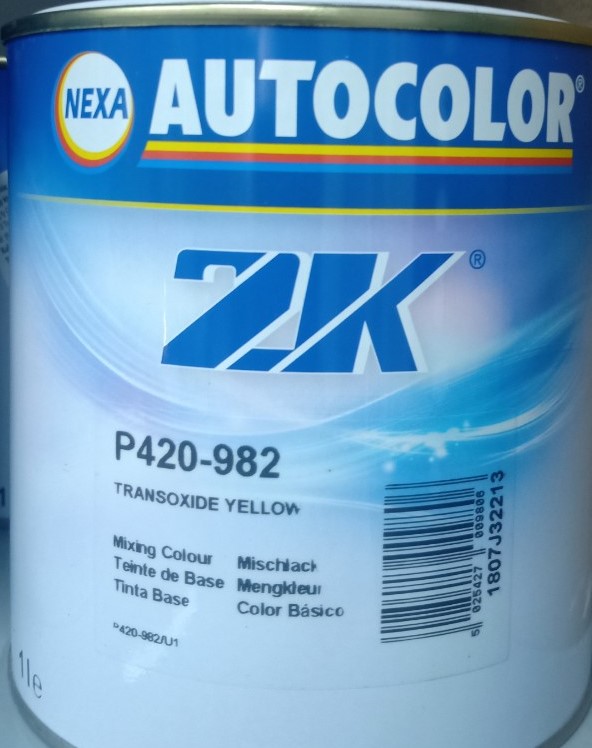 Sơn gốc 2K Solid màu Vàng Trong P420-982 có thể kèm với Màu Gốc Camay&metalic; Binder P190-376,P192-475;/5600/528,P565-660/768,; Hardaner P210-922/926; Thinner P850-1492/1493 trong hệ thống Sơn Automotive Refinishes thương hiệu Nexa Autocolor của PPG dùng cho màu Solid Tư Bóng-Mờ-Tạo gai , Camay & Metalic Phủ Bóng với chất lượng hioàn hảo và giá thành phù hợp với những loại xe đẳng cấp được sử dung rất nhiều tại Việt Nam. Tỉ lệ pha theo công thức màu và hướng dẫn sử dụng kèm theo sản phẩm..