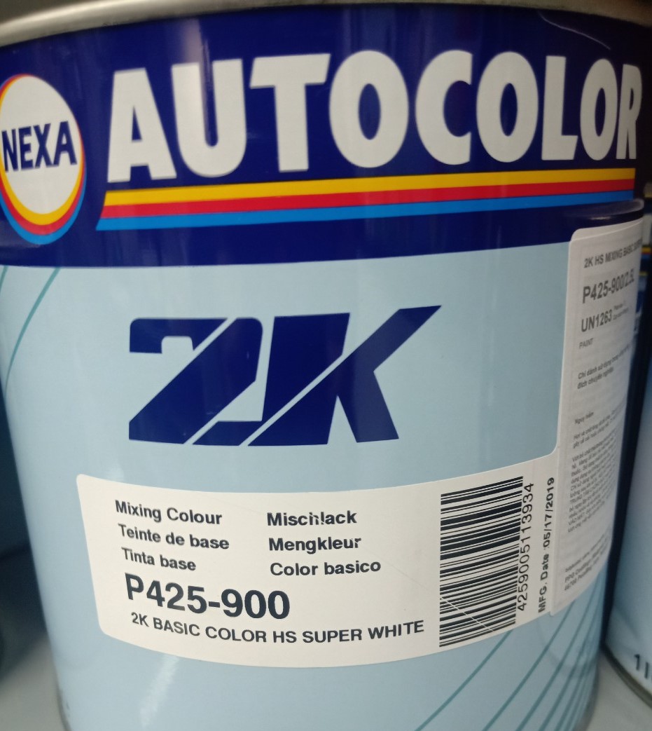 Sơn gốc 2K Solid màu Trắng Super P425-900 có thể kèm với Màu Gốc Camay&metalic; Binder P190-376,P192-475;/5600/528,P565-660/768,; Hardaner P210-922/926; Thinner P850-1492/1493 trong hệ thống Sơn Automotive Refinishes thương hiệu Nexa Autocolor của PPG dùng cho màu Solid Tư Bóng-Mờ-Tạo gai , Camay & Metalic Phủ Bóng với chất lượng hioàn hảo và giá thành phù hợp với những loại xe đẳng cấp được sử dung rất nhiều tại Việt Nam. Tỉ lệ pha theo công thức màu và hướng dẫn sử dụng kèm theo sản phẩm..