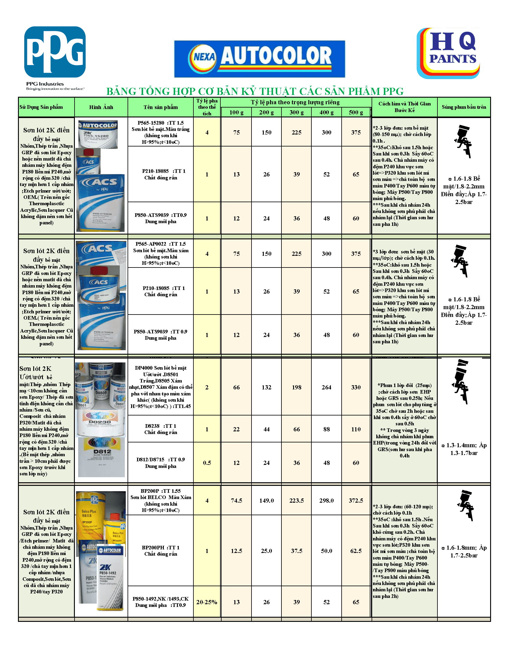 Hướng dẫn sử dụng màu gốc 2K Solid -Camay-Metalic PPG02/02/2021 09:32:04973Hướng dẫn cơ bản sử dụng và tỷ lệ pha màu -phụ gia hệ sơn Ô Tô 2K PPG